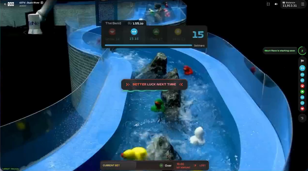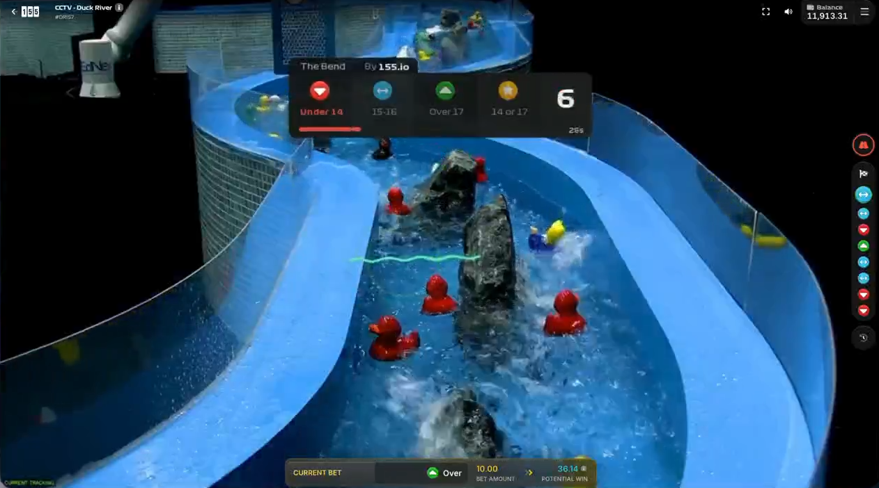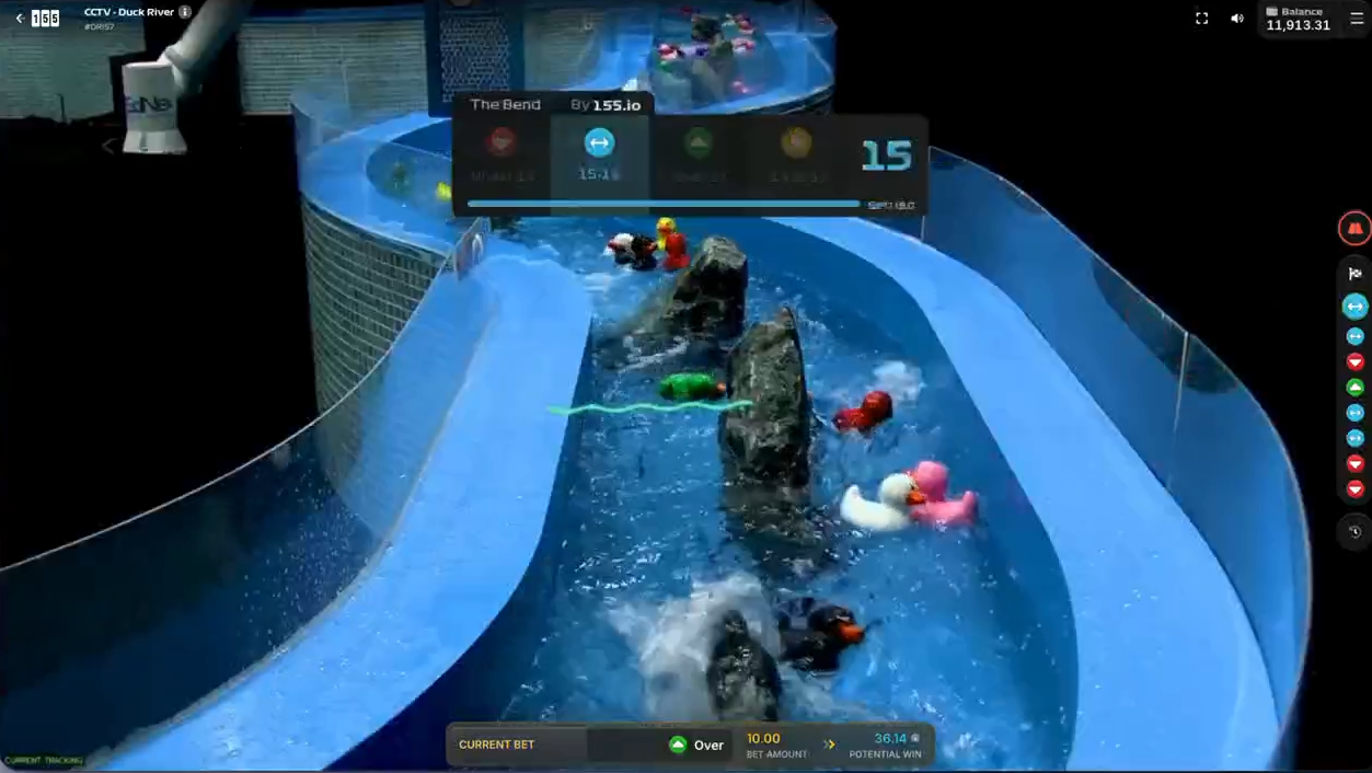 Duck River non è una slot machine nel senso tradizionale del termine. È una gara vera, filmata in tempo reale su un fiume vero, con anatre vere che scivolano tra rapide e mulinelli. Ogni partita dura circa 55 secondi, il tempo necessario alle anatre per attraversare la zona di finish.